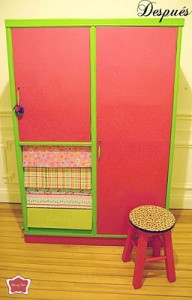 Arriba vemos el “antes y después†de un deteriorado armario de metal negro, que fue hecho a nuevo para un dormitorio infantil. Se lo pintó con colores vivos, especialmente en la cajonera, donde conviven múltiples estampas. ¿Irreconocible, no?
