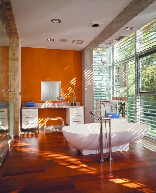 Las cocinas contemporáneas se llevan de maravillas con los pisos de madera. En este caso se trata de una alternativa con brillo, ideal para acompañar una cocina actual y elegante.